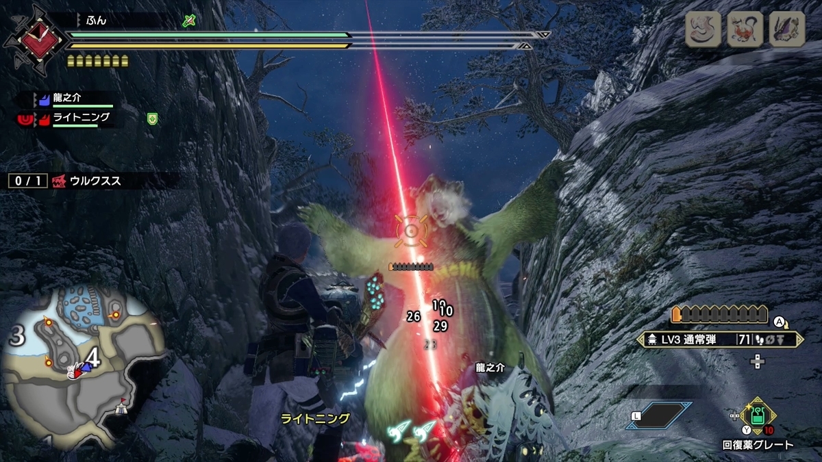 昨日はライトニング・せっしゅう・のりぽこさんとご一緒してました。 昨日はライトニングさんと2人の時に行ったウルクススがデカかったです。 おれ風呂入って出た後、ライトニングさんが一人でウルクススやってて、それに入らせてもらったんですが、その場に居たフルフルが小さい? フルフルの最小狙った方が良いのか? ってぐらいウルクススがデカかったです。
