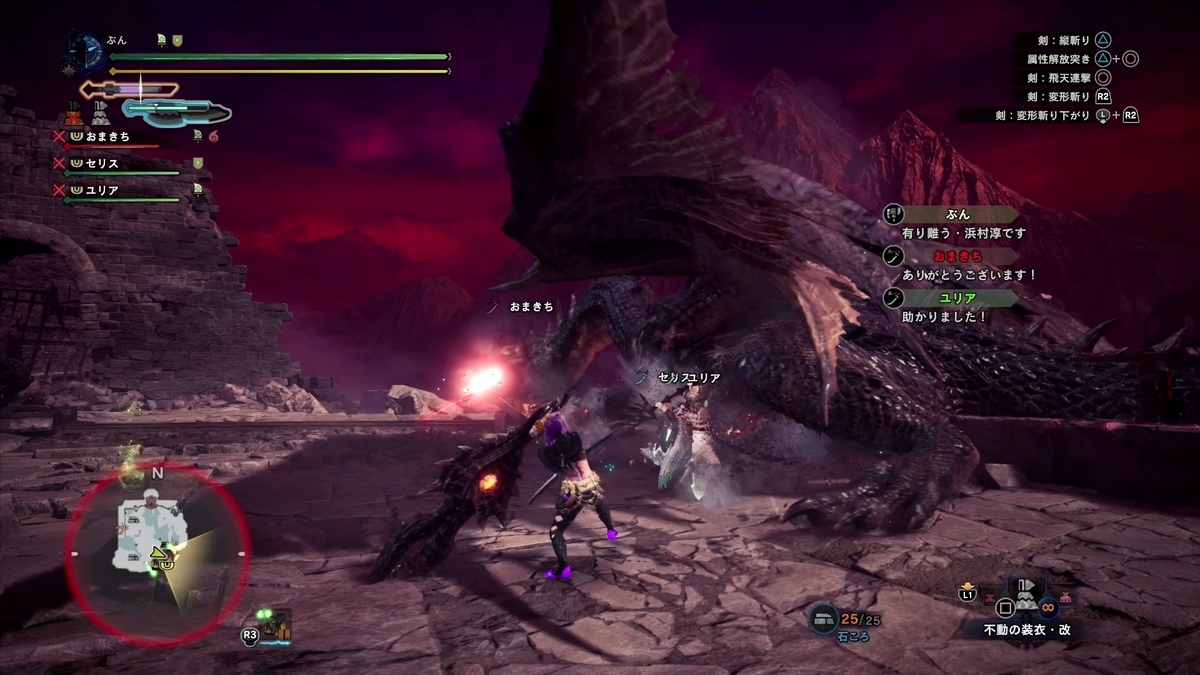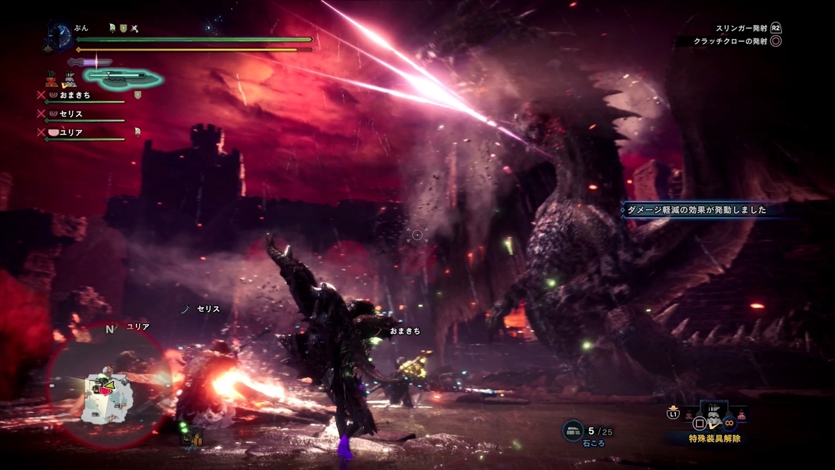 私二等兵なんで災渦転覆とかそういう高度な火力系スキルまったく入れてないんですけど、ヘヴィーだと絶対死んでるだろうって思える扇ブレス内移動も結構ダメージ少ないんで有難いですわ〜。 やっぱりガンナーは属性被ダメージが多めに設定されてるんでしょうね。 まあ2等兵なんで許して下さいませ。