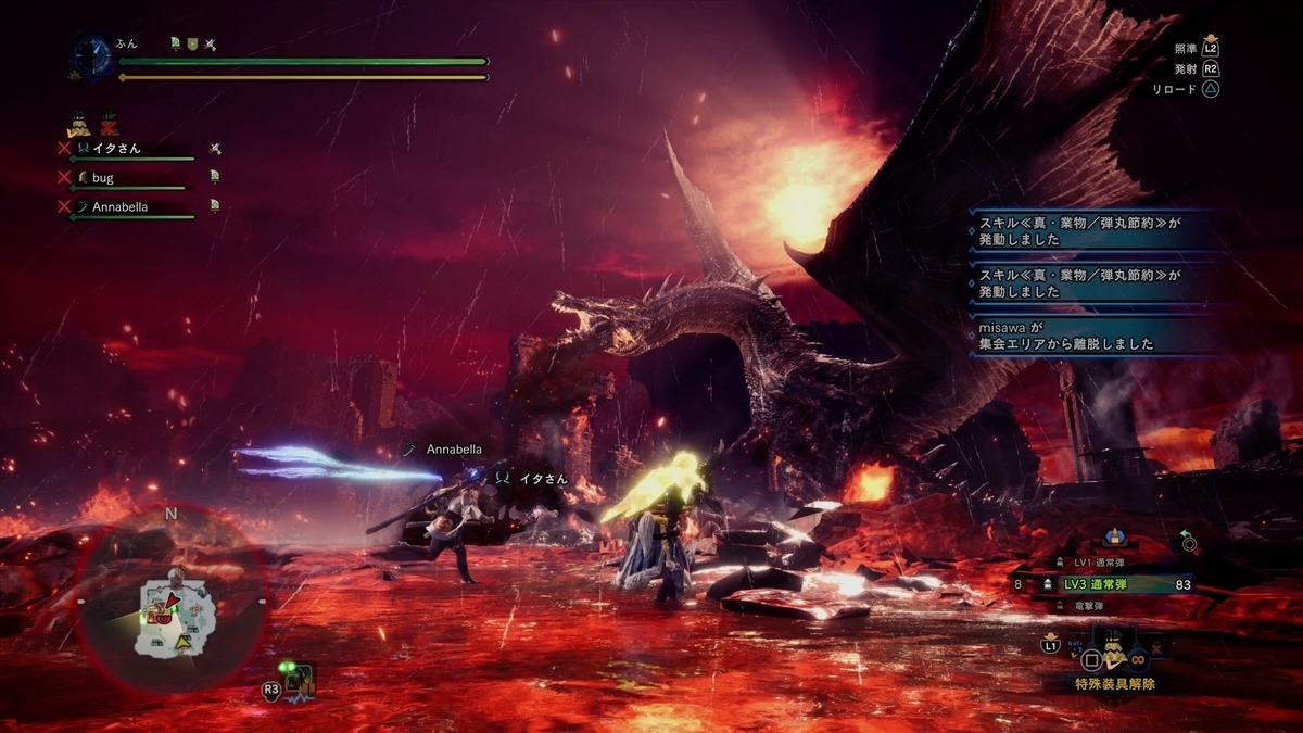 午前後半はイタさんとパーティ組むことが多かったです。 イタさんきっと俺と同じぐらいの年齢じゃないかな? 落ち着いてるよね。 Annabellaさんとbugさんとご一緒しました。 夕日が綺麗