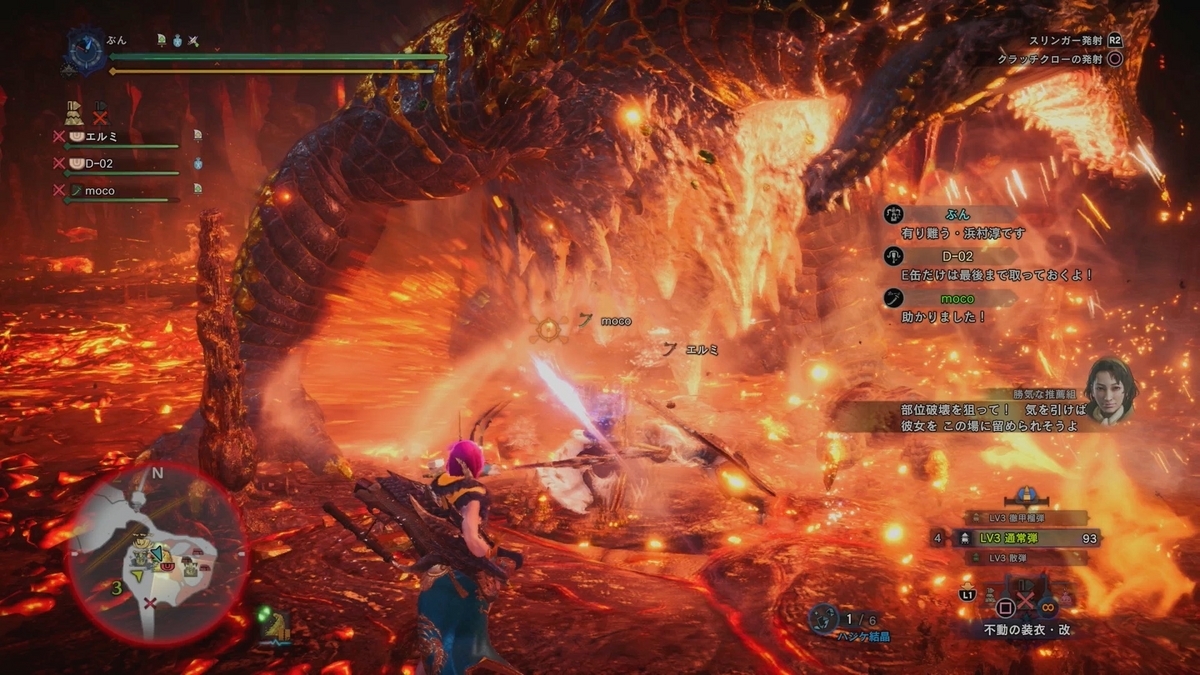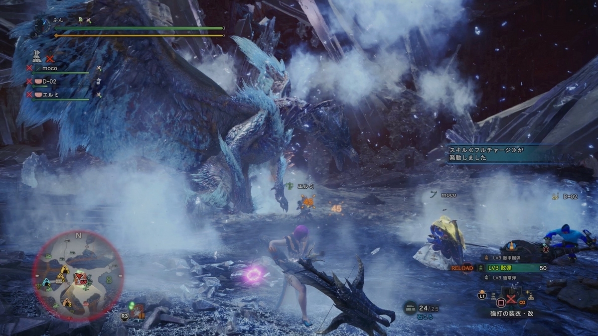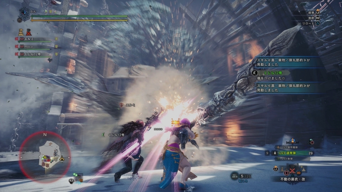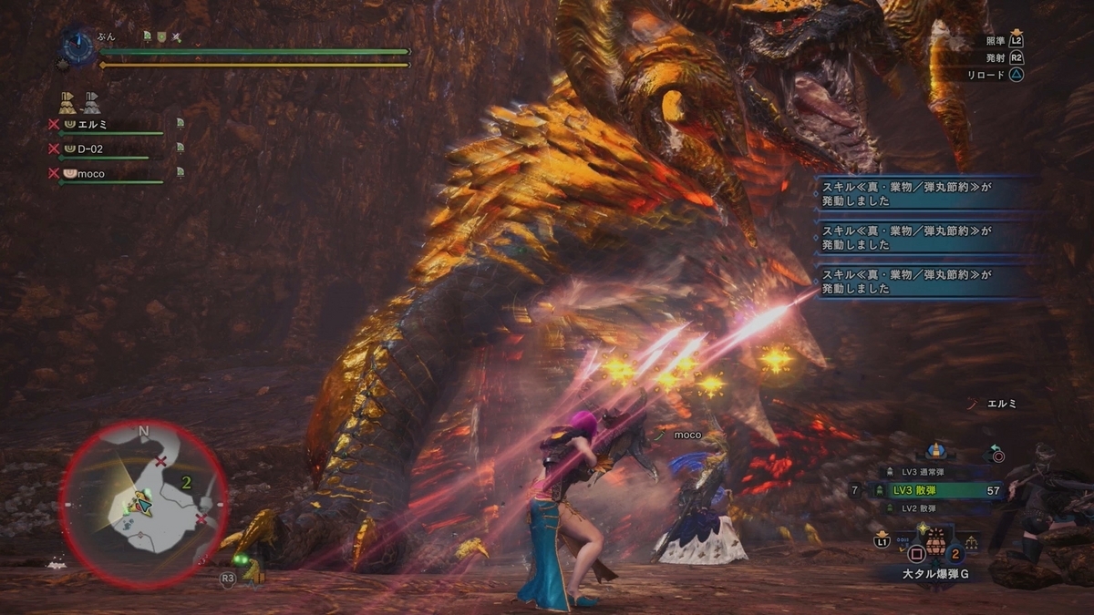 ハンマーで行って来ました。 序盤で1乙・・・。 倒れ込みの後近付くのがチト遅かったわ。溜3強叩き付け中にチャージブレス来て避けられなかった。エルミさんと2連乙でした。
