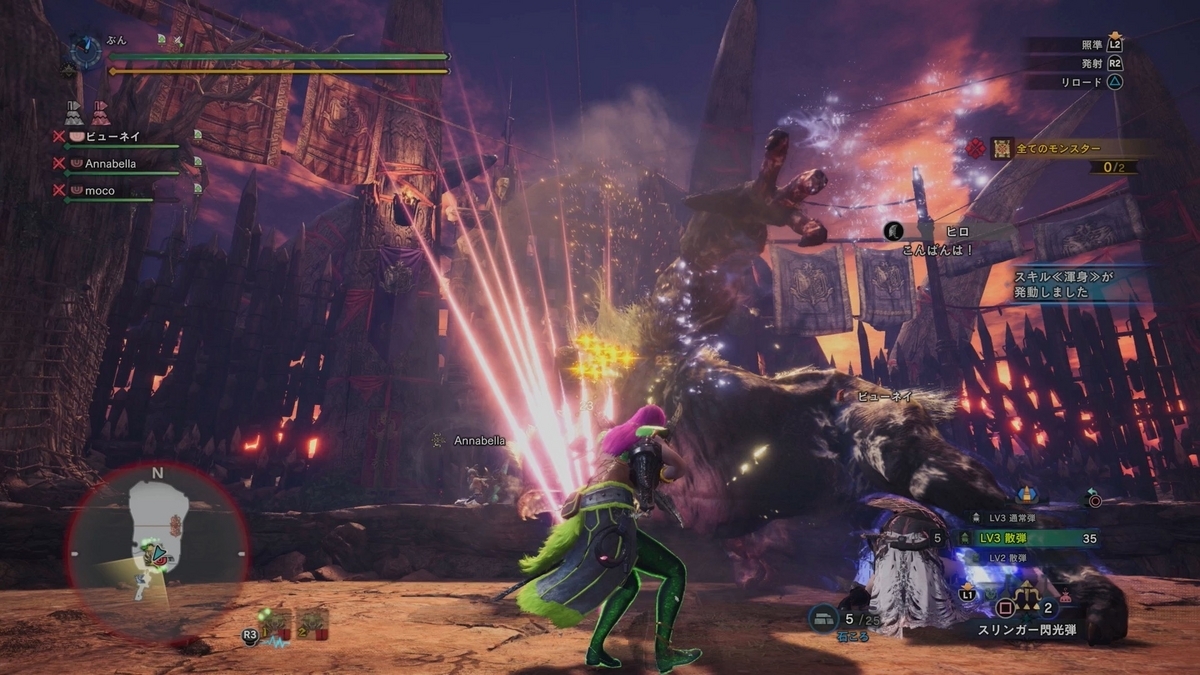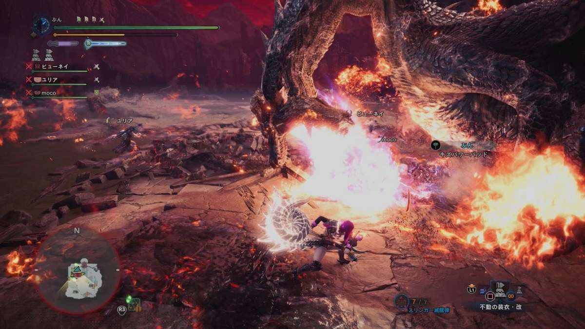昨日は8時ちょっと前からお邪魔してました。 昨日はミラ多めだったな〜。 昨日はちょっと初心に戻ってヘヴィー戦が多かったです。やっぱ火耐性野菜飯で大分死ななくなったわ。死ななくなったから生命保険も食わなくてもよくて、その分通常弾でも射撃飯が食えるんで火力が1割増えるんでなかなかよいかな。 結局俺のプレイヤースキルだと火力盛っても乙しやすいし、乙ればトータルで時間平均火力おちますもんね。 まあしばらくこれでやってみようと思います。 もっと上手く立ち回れるようになったら、火力盛ってみますわ〜。