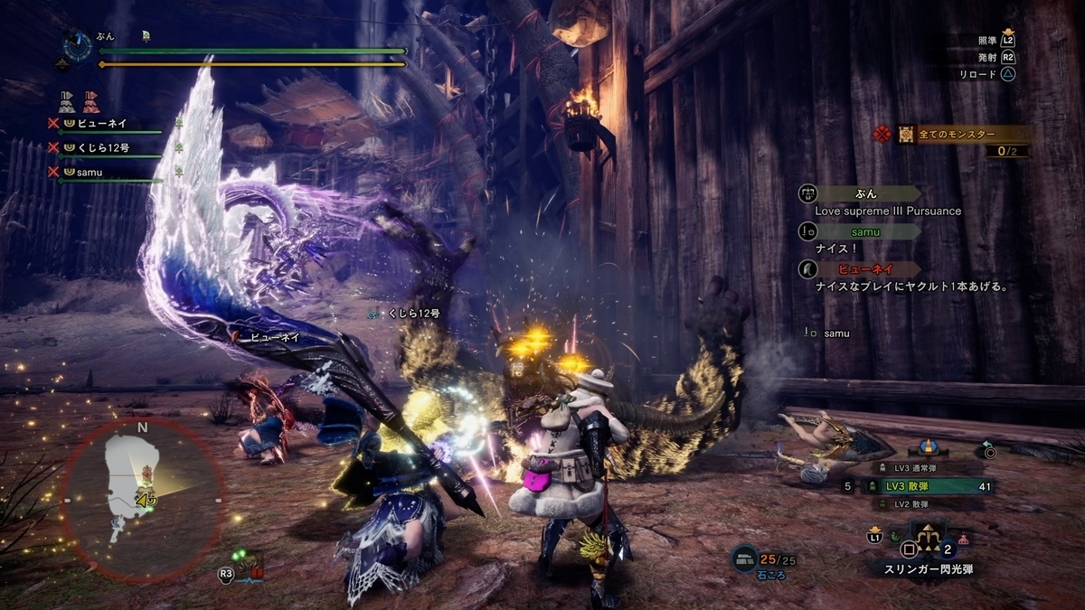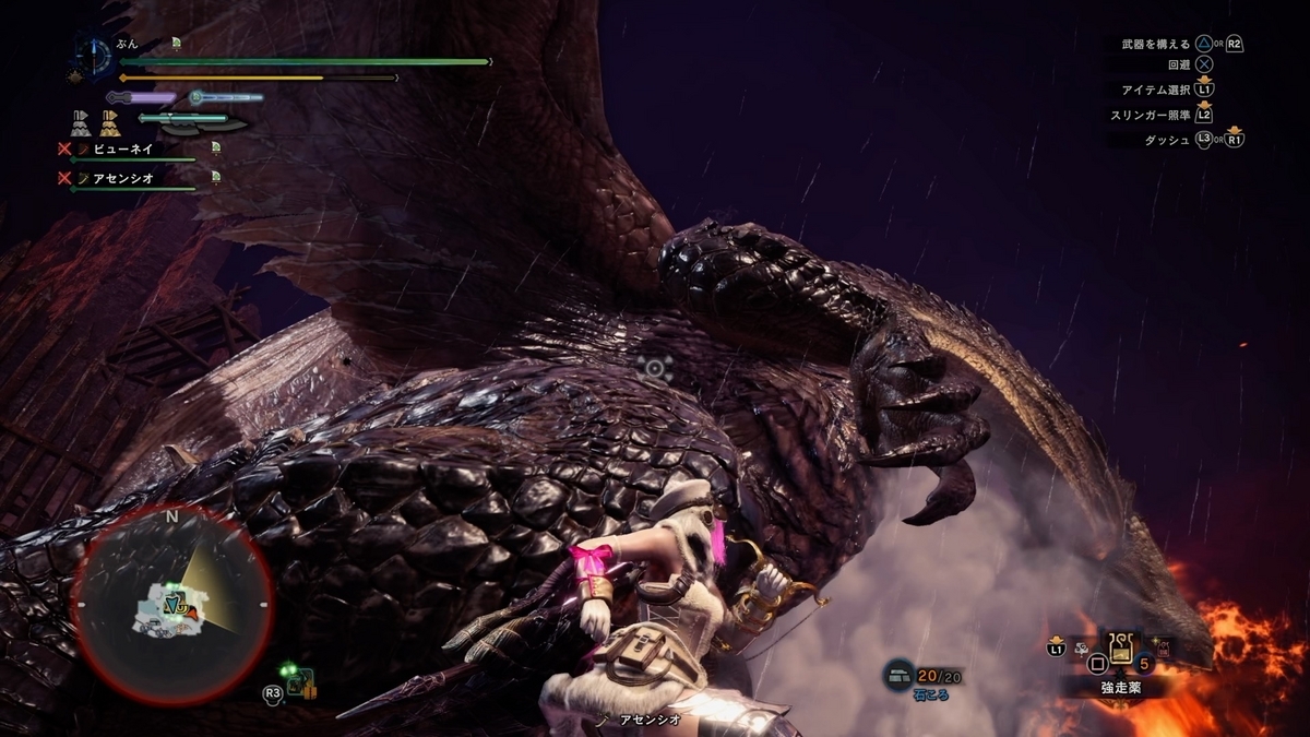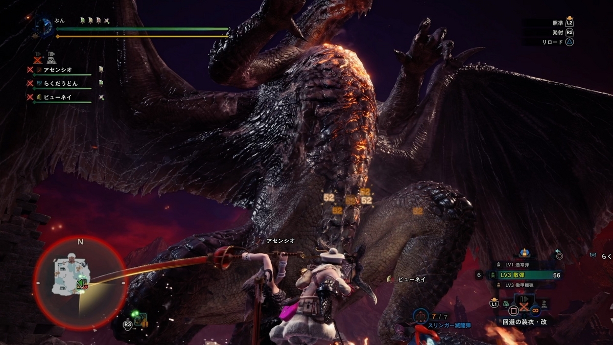 フライング連弾ブレスを見上げてますが、大分エイミングが遅くなってるな・・。 最近他の武器使うことが多くなって来たからね・・。 そろそろまたヘヴィー強化週間に戻るかな・・。