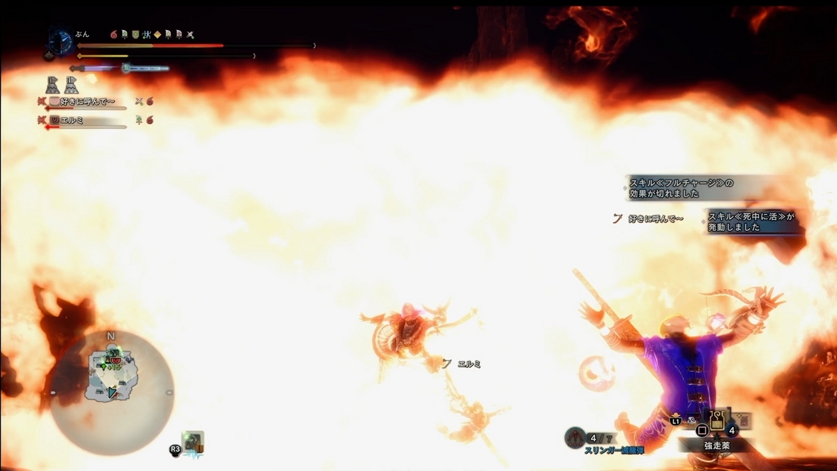 昨日の一枚はこれかな、ミラボレアス戦ハンマーでジグザグブレスの戻り頭を狙ってます、同じく兜割で降りて来るエルミさんが見えます。