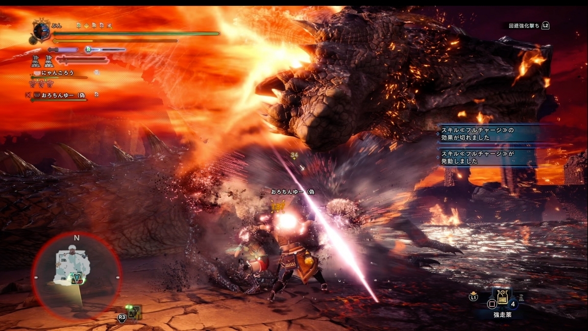ラストセカンドは双剣4人だったです。 頭部部位破壊ダウン後の兵器ダウンさらにそのまま頭部完全破壊になってました。 4人のマズルフラッシュがすさまじいですw。