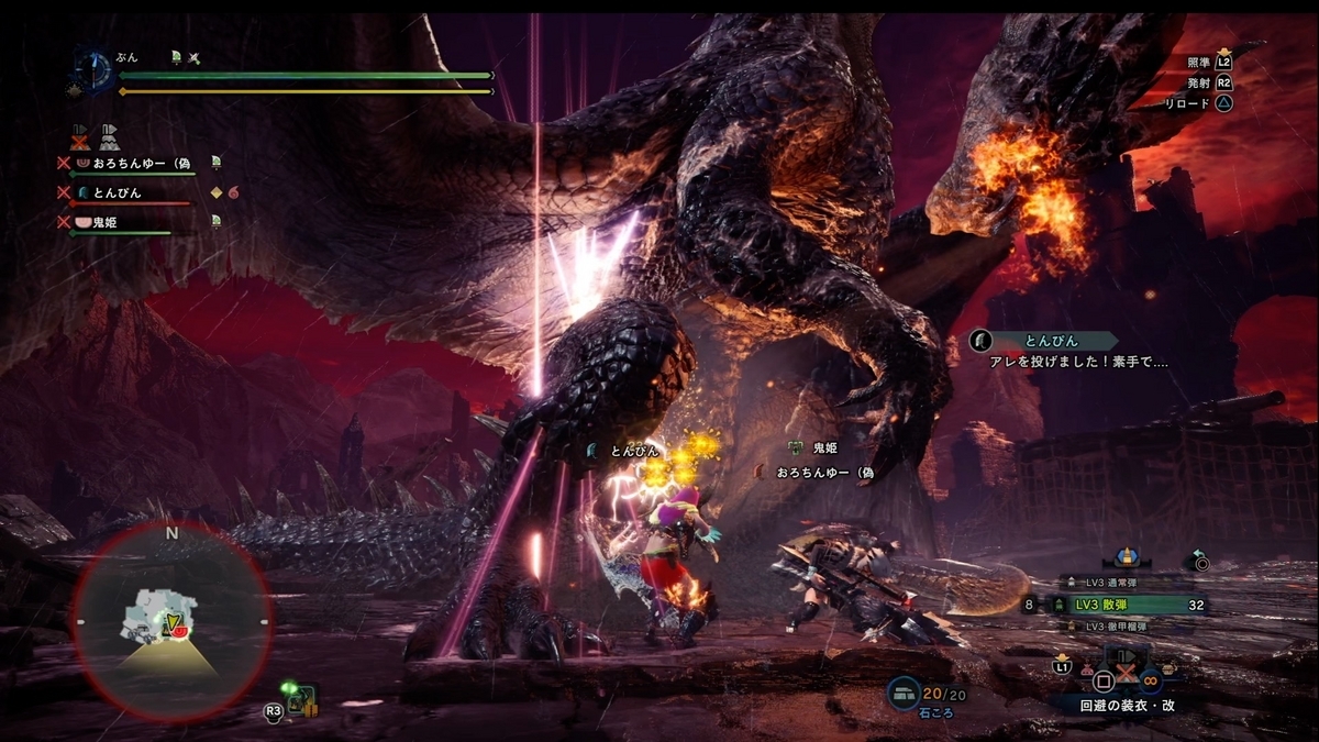 ヘヴィー戦は鬼姫さんも散弾でダブル散弾でもちろん青ブレスでしたわ。 でも皆さん全く問題無しの熟練者達でした。